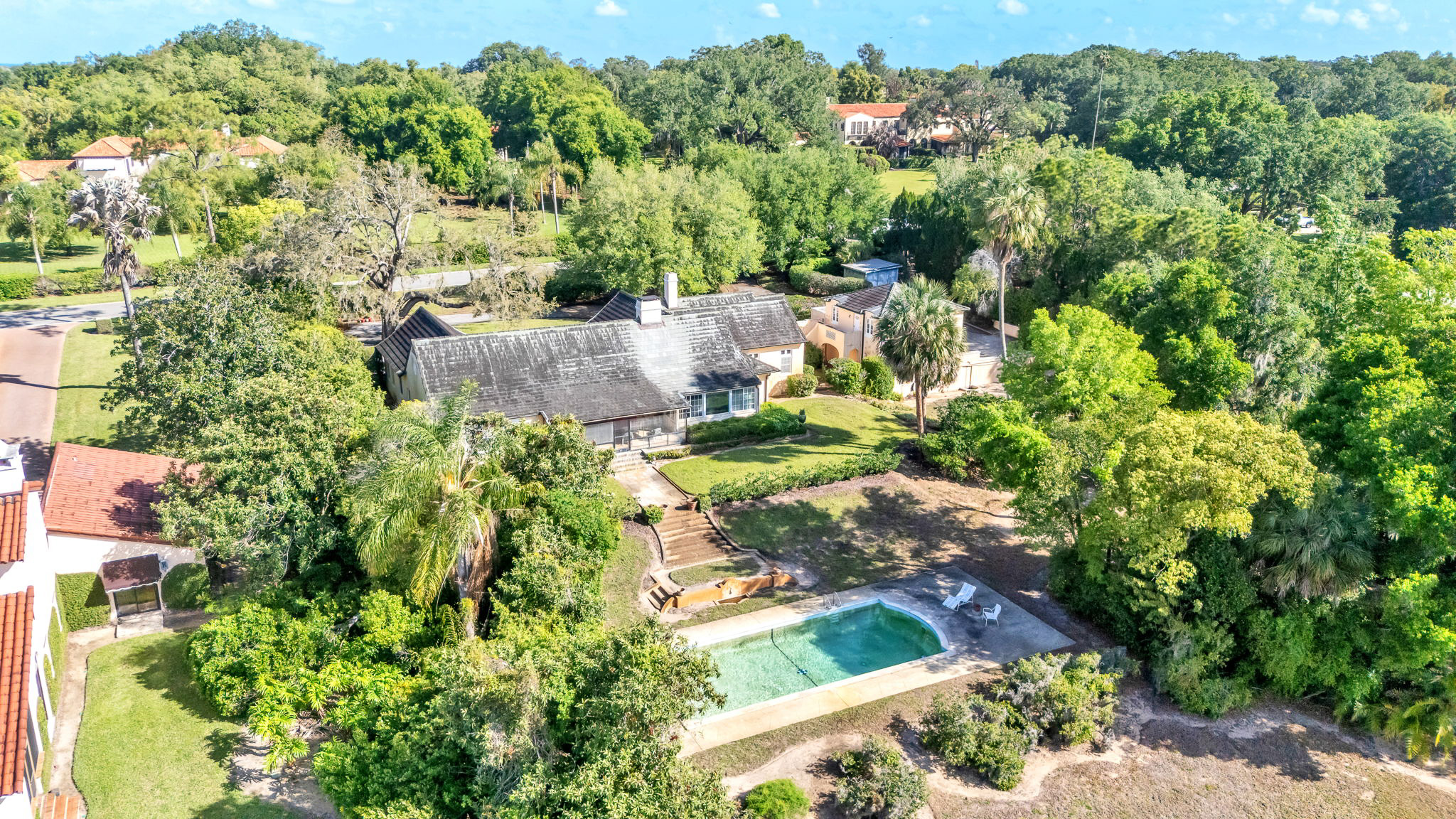 History and provenance await in this significant residence in Mountain Lake’s story. Built in 1918 by famed Olmsted associate Charles R. Wait with additions by Franklin W. Abbott, this property was one of the original cottages commissioned by Mountain Lake Corporation to attract early investors. The setting perched above the lake offers sweeping and long range views to the southeast and Bok Tower is visible from the pool and the original Olmsted garden area. Because of its significance, this property also features detailed sketches, drawings, blueprints, and archival photos capturing every detail as originally intended of the Olmsted designed grounds, gardens, and residence.