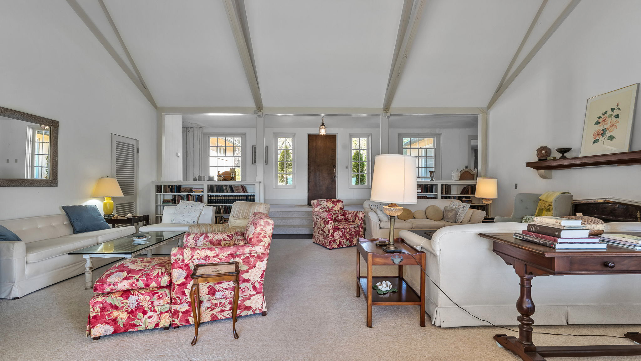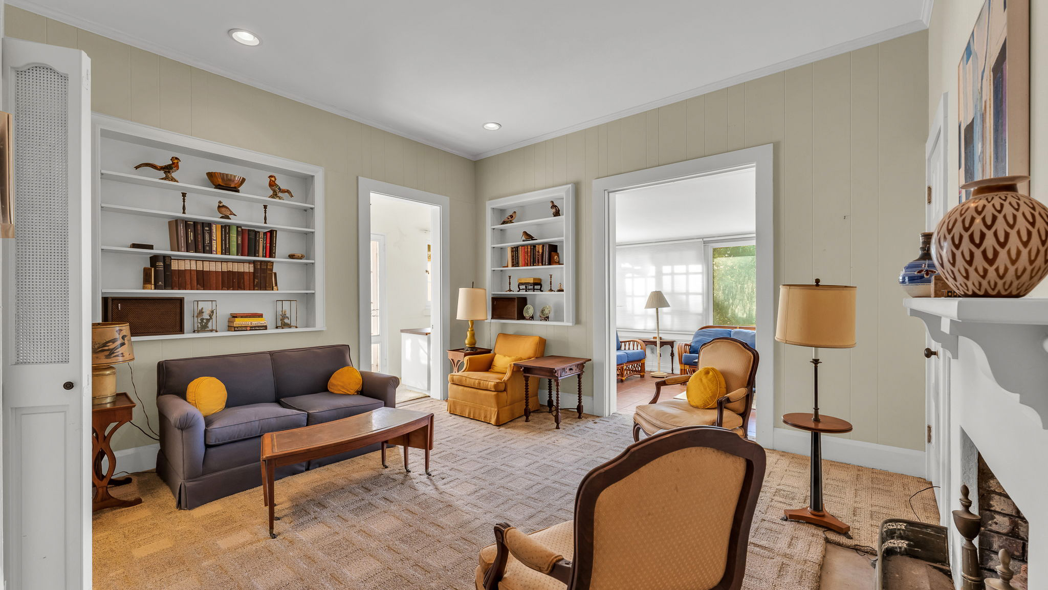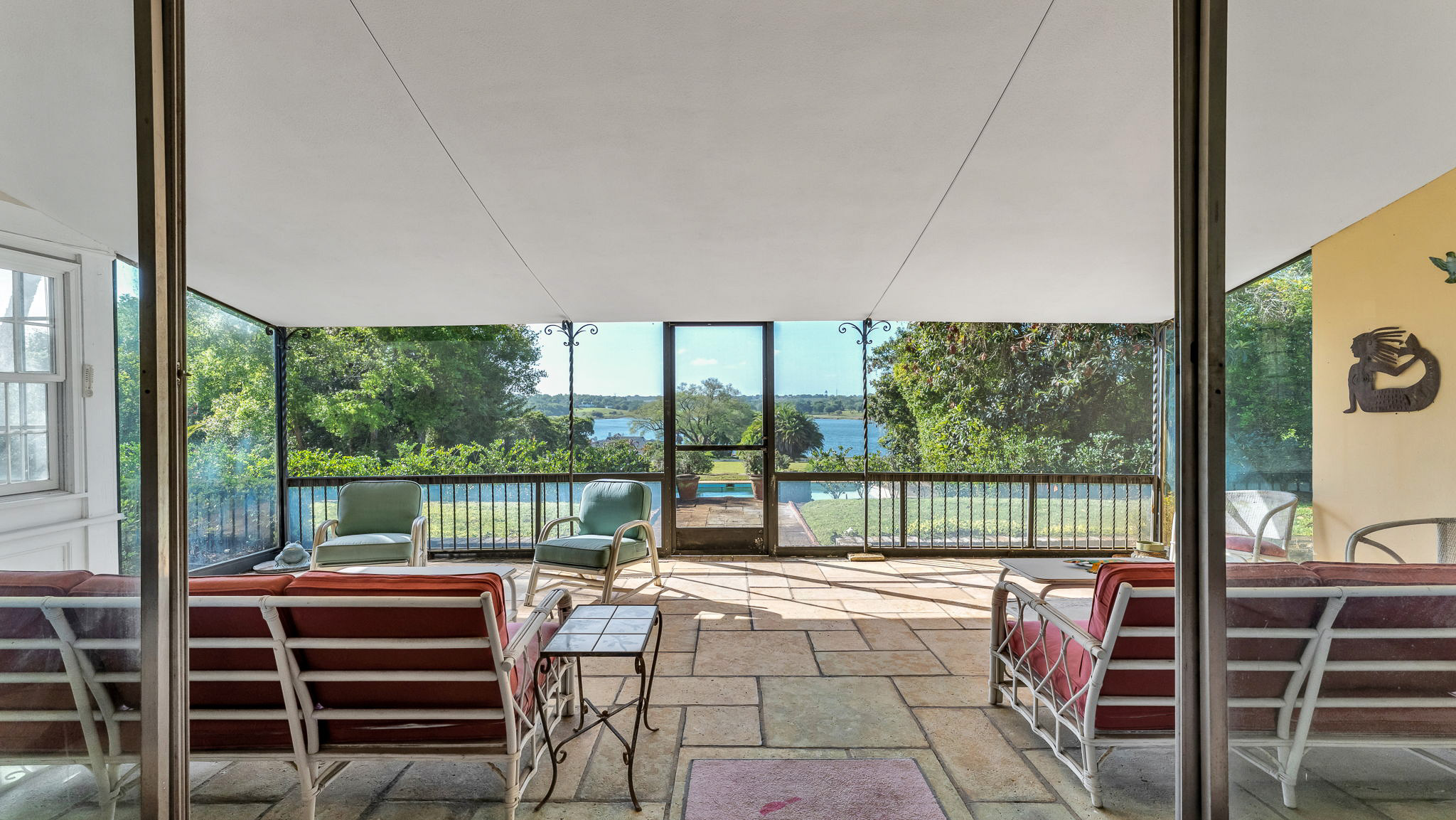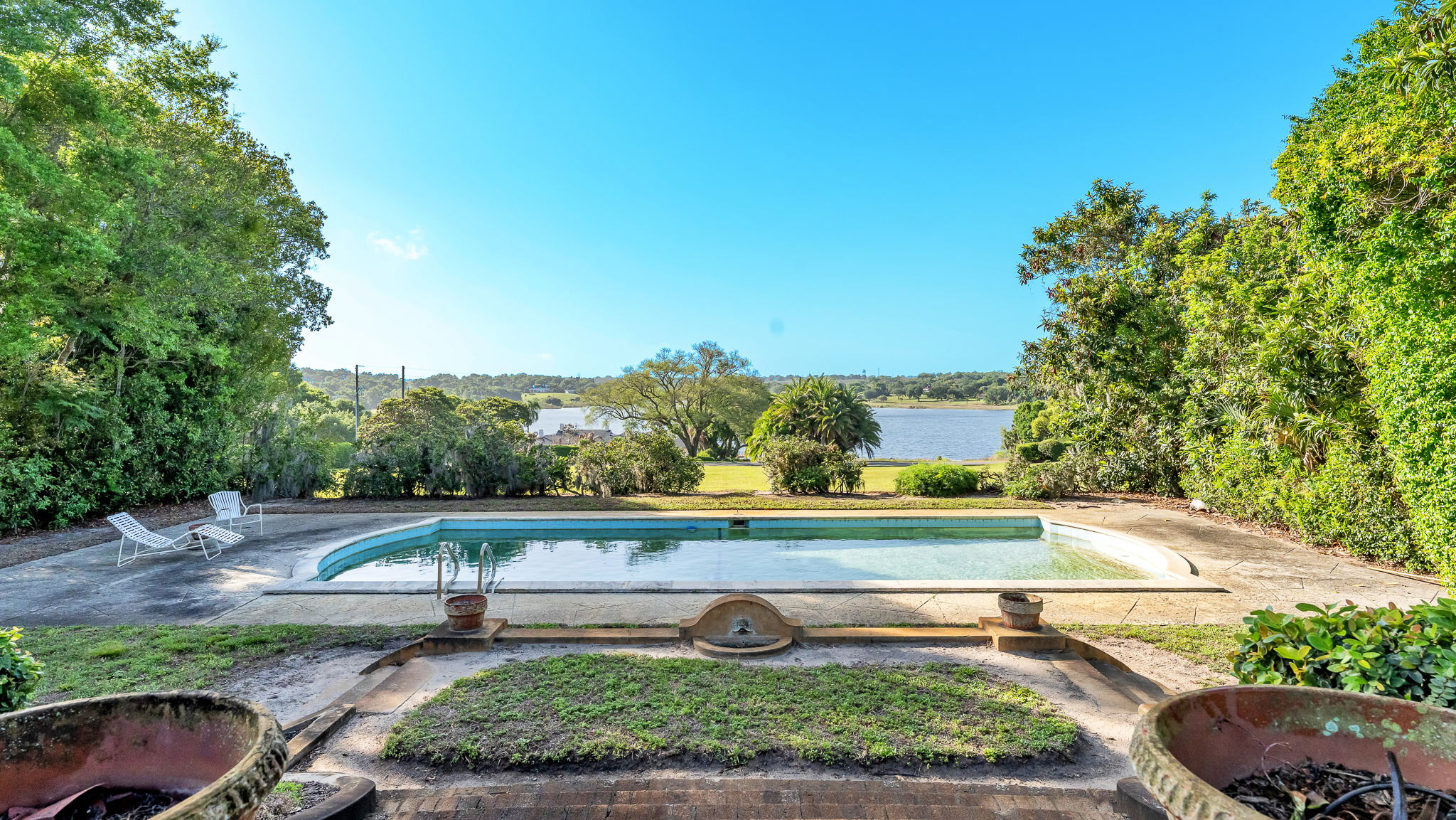 The two acre homesite features the main house, which consists of a dramatic great room with lake views, three bedrooms, formal dining room, cozy den, airy sunroom, and porch. The detached two car garage features three bedrooms with a private entrance. The side garden centerpiece is an Olmsted designed reflecting pool framed by poured concrete walls and steps leading to the terraced garden pool area.