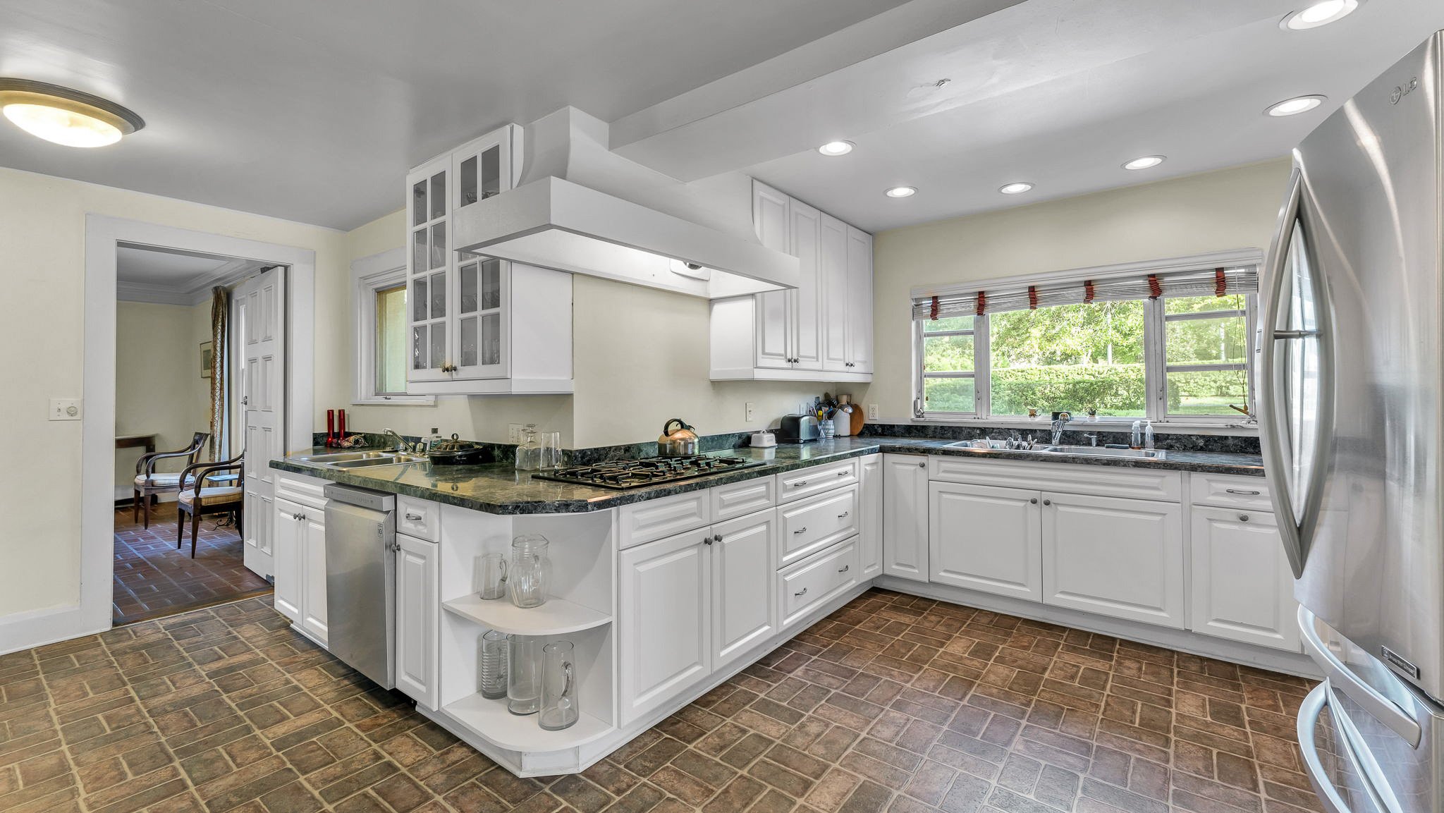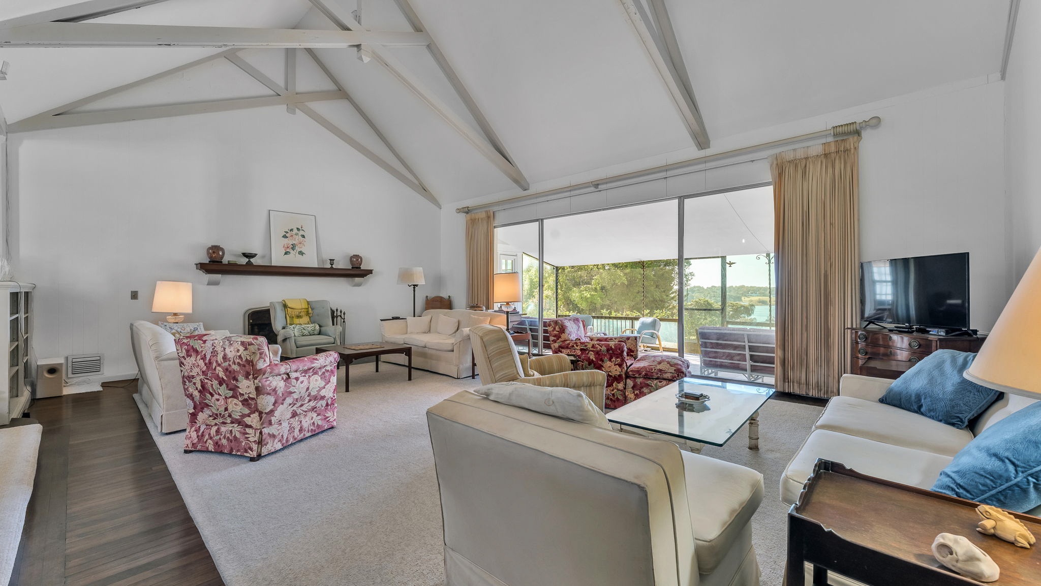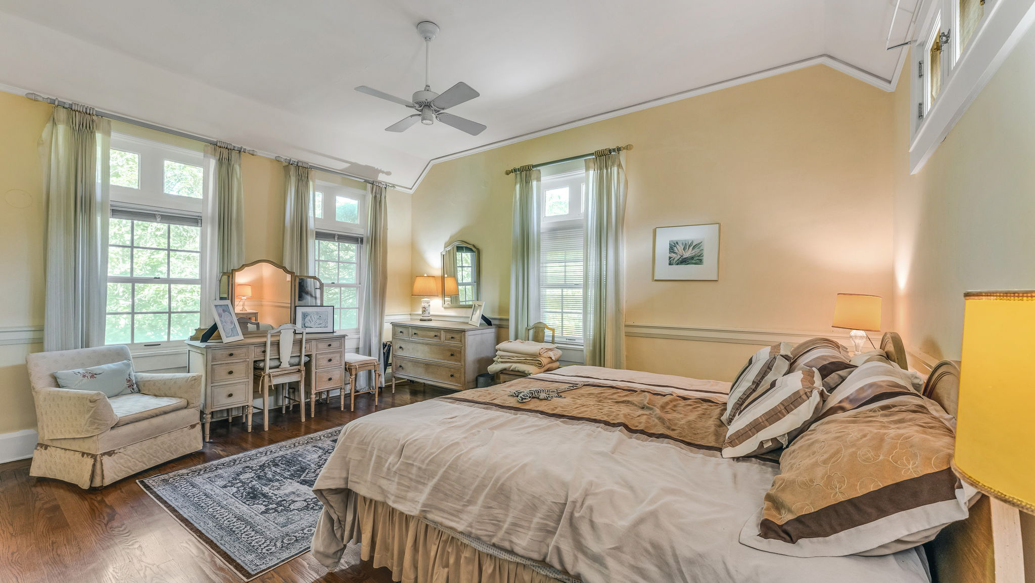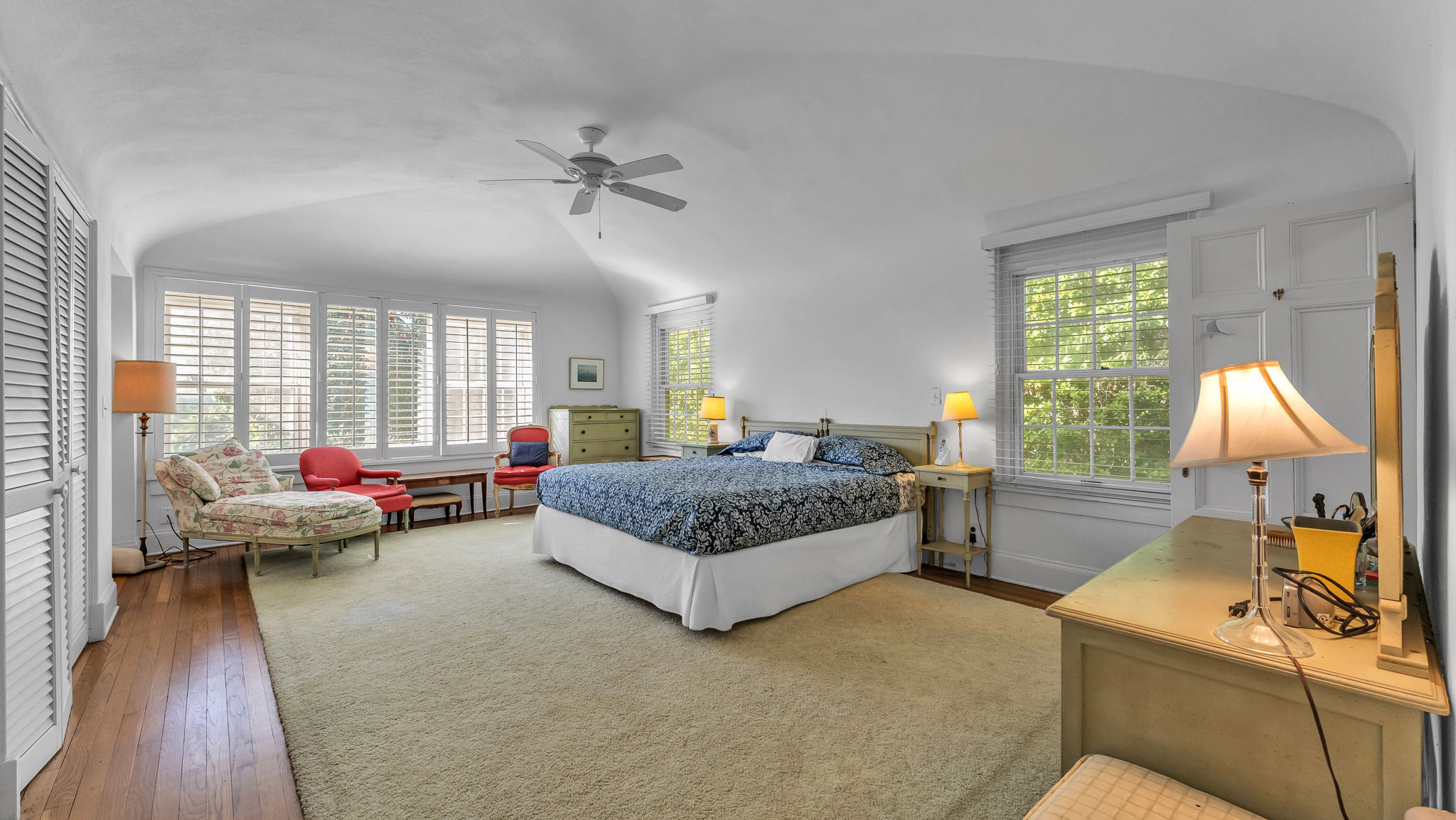 The two acre homesite features the main house, which consists of a dramatic great room with lake views, three bedrooms, formal dining room, cozy den, airy sunroom, and porch. The detached two car garage features three bedrooms with a private entrance. The side garden centerpiece is an Olmsted designed reflecting pool framed by poured concrete walls and steps leading to the terraced garden pool area.